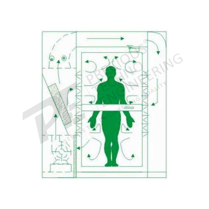 An air shower is a self-contained decontamination system installed at the entry/exit of cleanrooms and controlled environments. It uses high-velocity filtered air jets to remove dust, lint, and other contaminants from personnel or materials before entering clean areas.